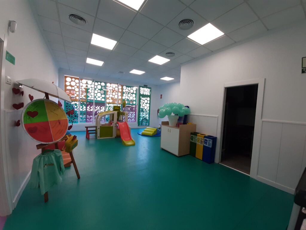 El centro también posee una sala de usos múltiples que sirve de zona de esparcimiento para nuestros alumnos, un patio exterior donde poder disfrutar de nuestro buen tiempo durante el tiempo de recreo además de una cocina en la que se realizan a diario los menús de los alumnos, y zonas de atención administrativa y recepción para los padres.